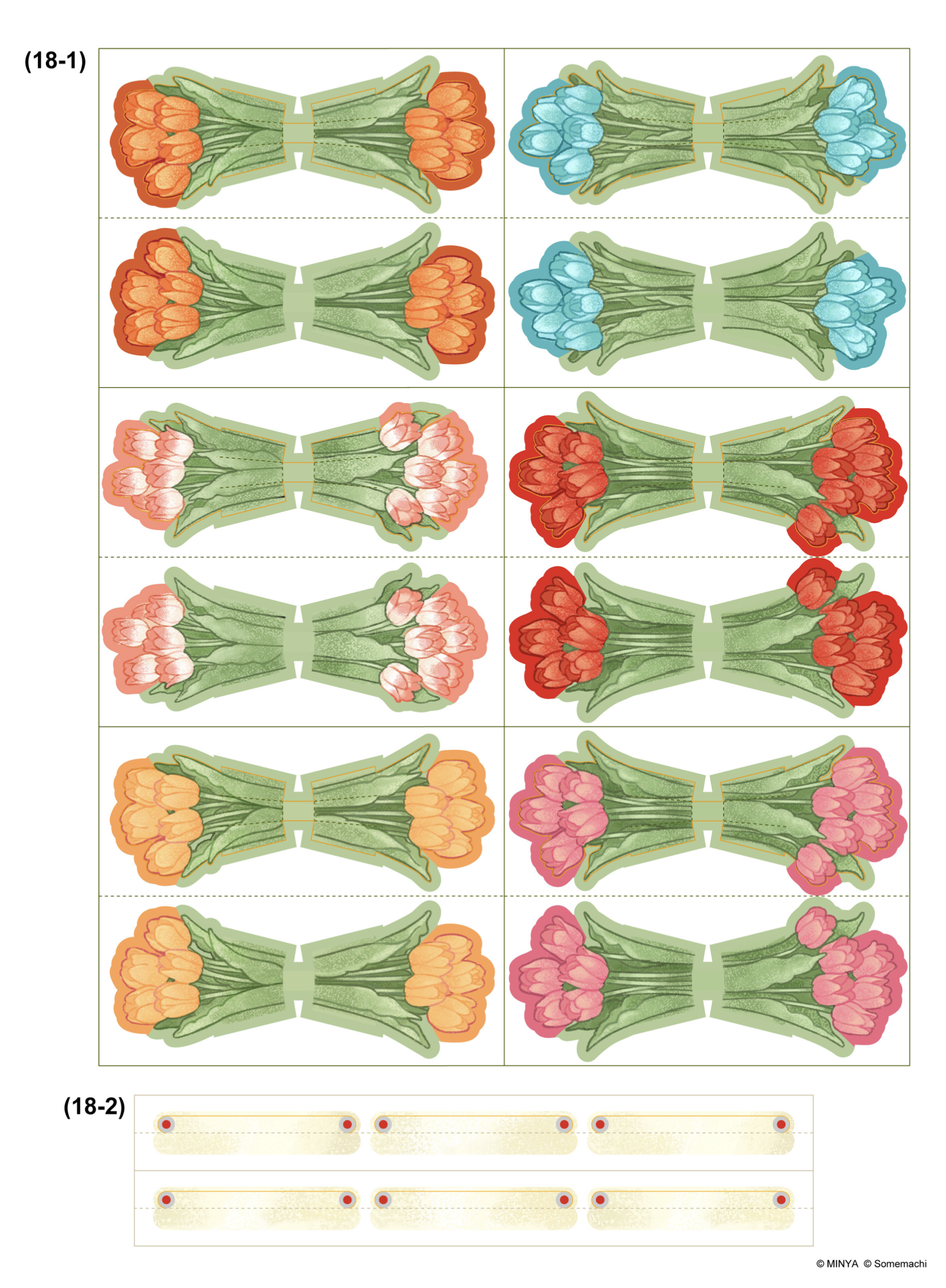 색종이나 카드지, 가위, 풀, 양면 테이프, 장식용 마커나 펜, 그리고 미니어처 꽃병, 바구니, 꽃 액세서리 등 포함하고 싶은 추가 장식물이 필요합니다.